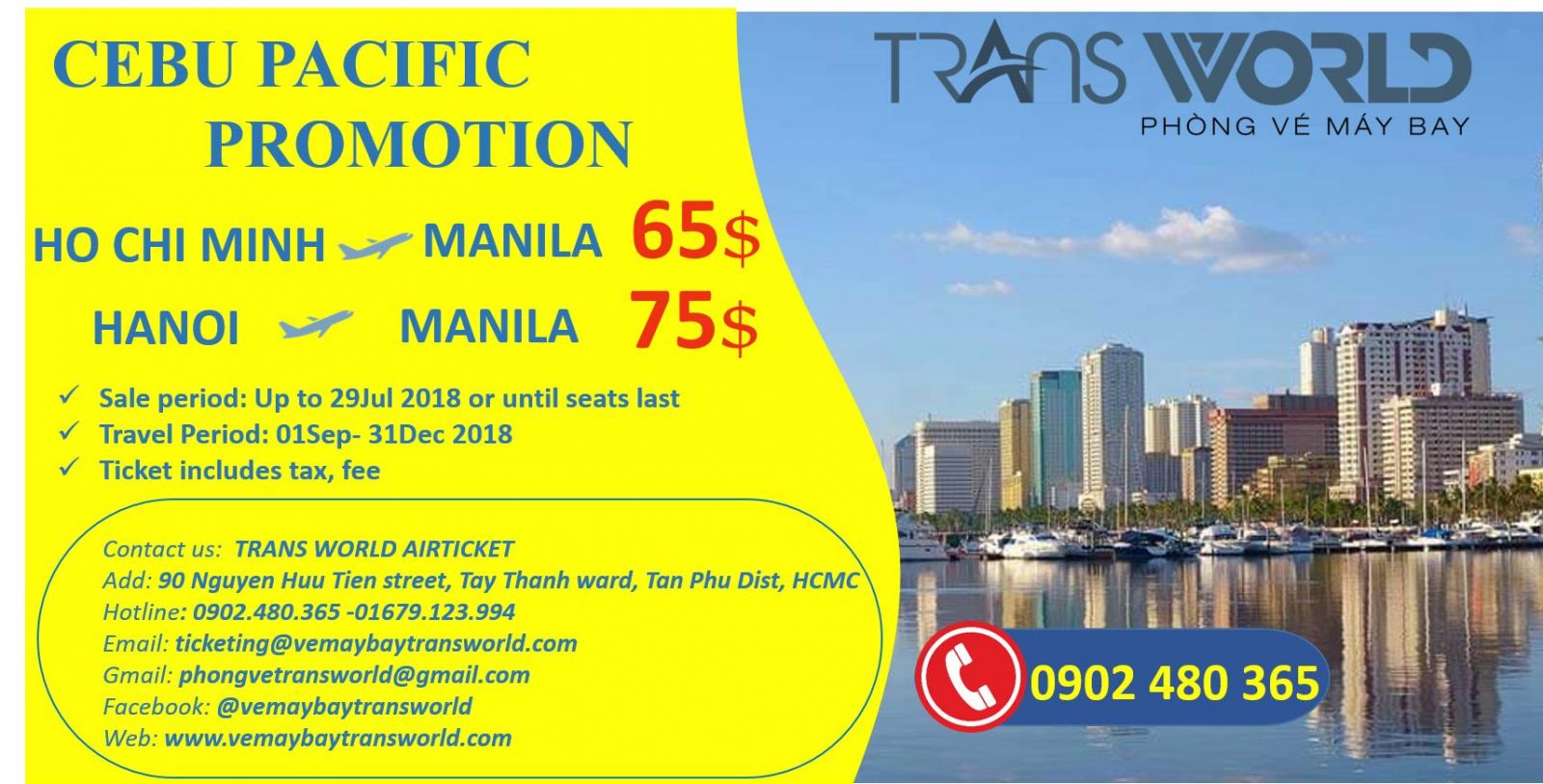 Hãy cùng Trans World tham khảo giá vé khuyến mãi của Cebu Pacific như sau: