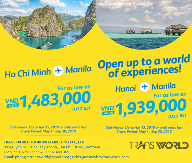 Hãy cùng Trans World tham khảo giá vé khuyến mãi của Cebu Pacific